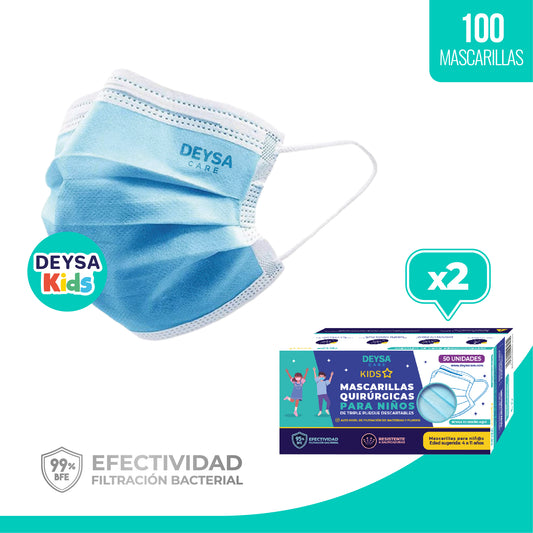 Mascarilla Triple Pliegue KIDS Deysa Care® 2 Cajas